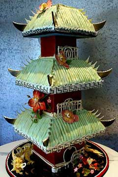 Japanese Wedding Cakes. Wedding cake varying shapes and sizes, like a wedding cake picture above, there is a wedding cake like a traditional Japanese house, wedding cake-like noodles with chopsticks. There are also wedding cake with sakura flower and and two Japanese bridal pair.